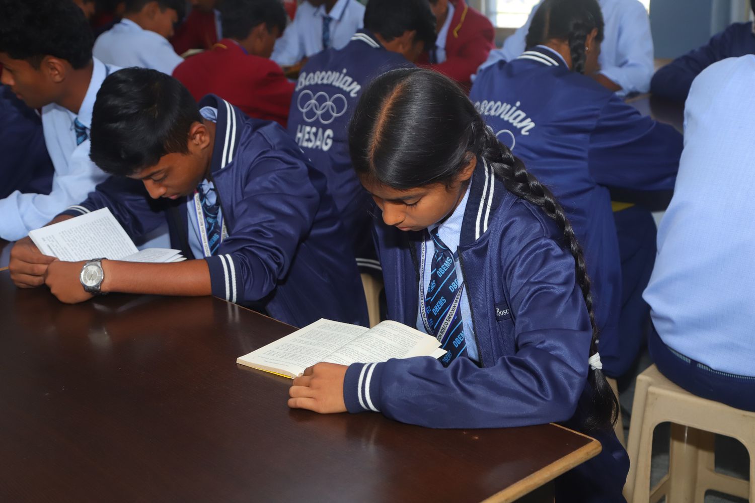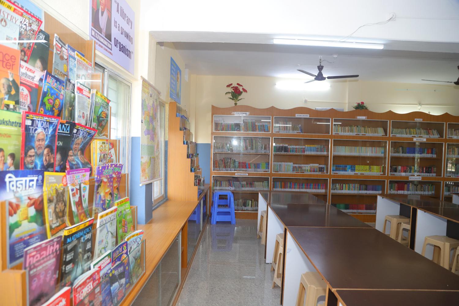 The school library is a well-organized and inviting learning space designed to foster a strong reading culture and intellectual curiosity among students. It offers an extensive and diverse collection of books, including folk tales, fiction, biographies, encyclopedias, comics, science fiction, reference materials, and general knowledge books to suit different age groups and interests. The library provides a calm and resource-rich environment that encourages students to read, research, and explore ideas beyond the classroom. With easy access to informative and imaginative literature, the library supports academic growth, creativity, language development, and the development of lifelong reading habits.